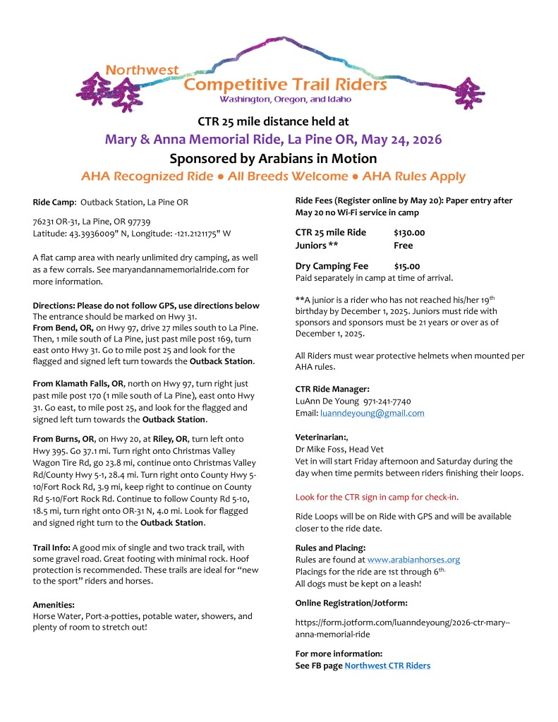 The Mary and Anna Memorial Ride honors two of the most influential women the Northwest Region ever knew. Anna Sampson and Mary Nunn were committed to the sport of endurance riding and supported their juniors faithfully. Come ride some of the best trails in the NW and grab an opportunity to contribute to the #1 source of funding for the Mary & Anna Memorial Youth Fund!